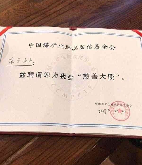 袁立是中国煤矿尘肺病防治基金会的慈善大使,受到了国家的认可。