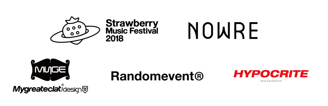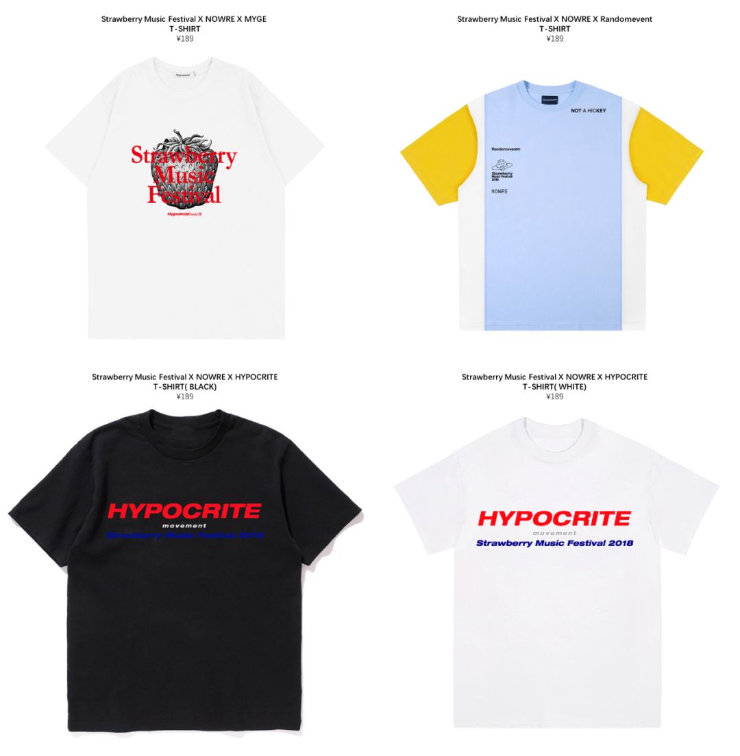 三方联名!草莓音乐节联手年轻人潮流生活媒体NOWRE( WWW.NOWRE.COM ),以及国内三大顶尖潮牌MYGE/ RANDOMEVENT/ HYPOCRITE,分别释出草莓音乐节限定联名款TEE,官售区将限量发售:
