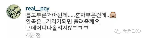 灿烈ins更新评论一则【不是弹唱的……是自己唱的……完整曲呢……有机会的话会上传的。但是在哪里上传好呢?】另外沈在元老师评论【用心地做的呢】