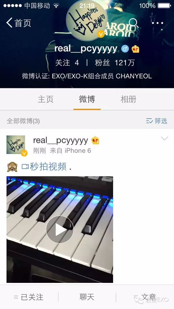 【EXO新闻】150902 灿烈微博再次更新 同样的低音炮