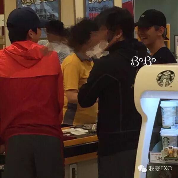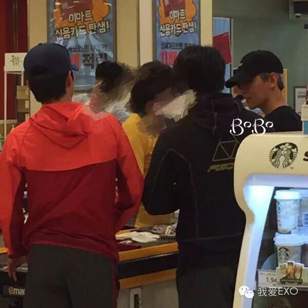 今天有粉丝目击XIUMIN和伯贤一起出去采购,去了星巴克,还去了超市~推主说看到伯贤一直在看剃须刀cr.logo