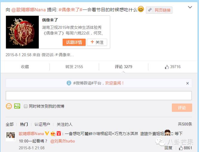 而在刘昊然的微博里,也是小粉红乱飘哇。帮欧阳娜娜吆喝节目: