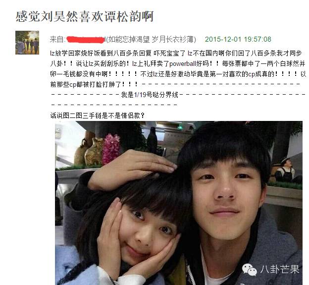 在12月初的时候,豆瓣八组就有人看出来了端倪,说觉得刘昊然喜欢的是谭松韵。