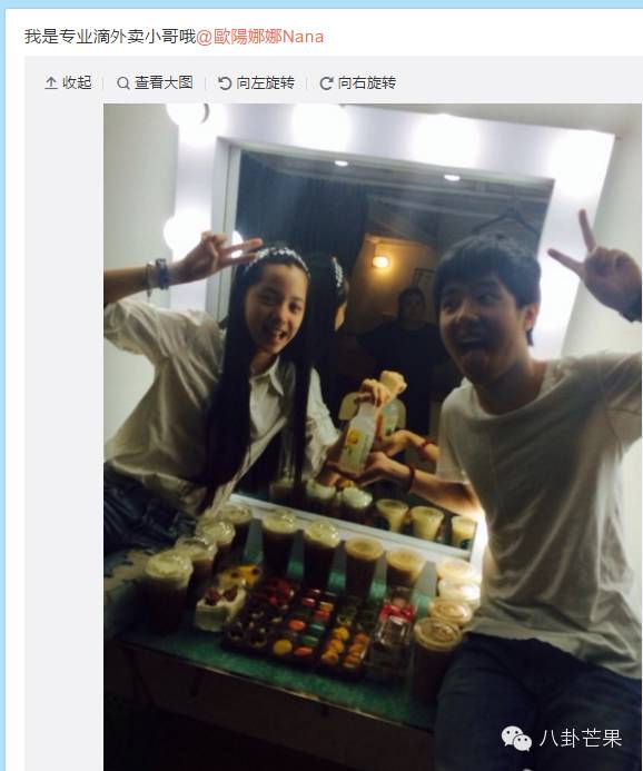 还帮欧阳娜娜送外卖。给喜欢的人买吃的买喝的,不就是那个年龄传达感情的惯用手段吗?