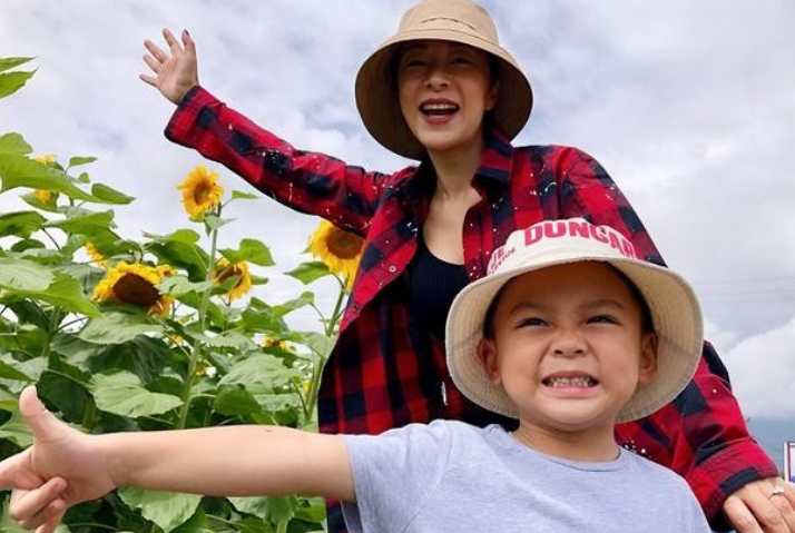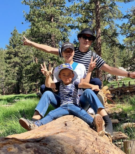一家人出门游玩,保剑锋和儿子穿着亲子装,一家人姿势同步比划着。看来保剑锋减少了演戏工作之后,一直在照顾家庭。