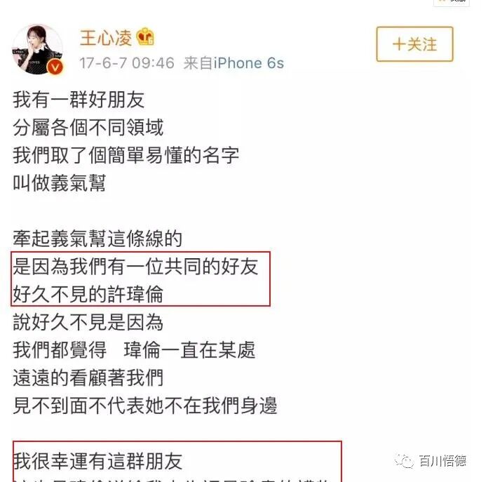 后来王心凌在澄清绯闻时,也提及了许玮伦,称因为有许玮伦的存在才有一种“义气帮”好友。