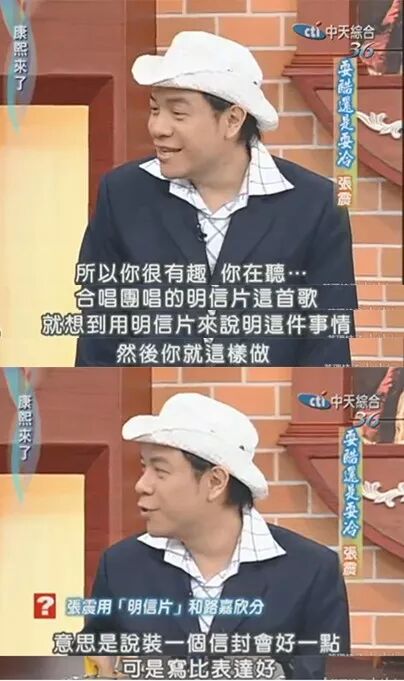 上《康熙来了》时,张震曾解释过原因,只是因为刚好听了自然卷的歌《明信片》………………