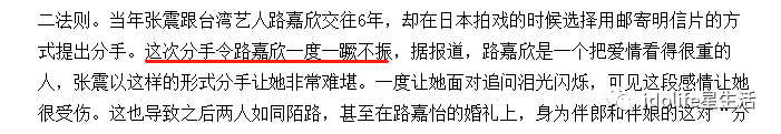 张震后来也承认,当时这样做并没有考虑路嘉欣的心情。
