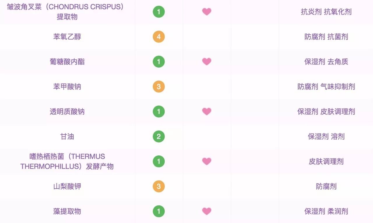 其实从成分表中看,前排有酵母提取物和肽,后面还有视黄醇棕榈酸酯和为维生素E等等,全都是抗氧化和抗老的成分,尤其是视黄醇棕榈酸酯是维A的衍生物,对于细纹有很好的改善效果。