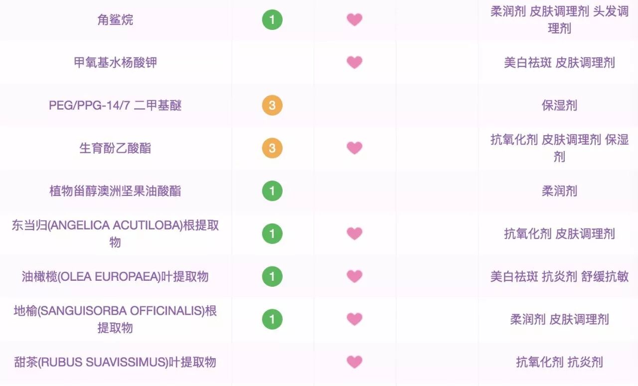CPB金致乳霜的使用感非常好,会有皮肤瞬间变好的错觉,这和它添加了很多的成膜剂和肤感调节剂有关,倒是可以有效的锁住皮肤水分,但功效性成分添加的不多,虽然植物提取物超级多但都很靠后,我就没截了,最靠前的功效成分就是角鲨烷和维生素E。