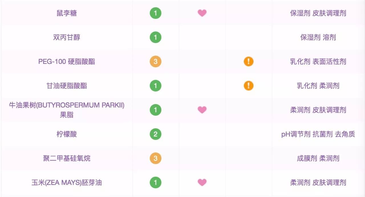 牛油果树是很多贵妇面霜爱添加的保湿成分,尤其是对干性和角质受损的皮肤有滋润修护的功效,同时还能提高面霜的肤感。玉米胚芽油可以保护皮脂和细胞膜蛋白质及皮肤中的水分,推迟细胞老化过程。
