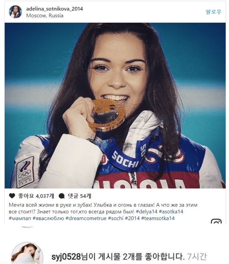 在孙妍在点赞的照片中,斯托尼科娃欣喜地咬着奥运金牌,她在索契冬奥会上夺得了俄罗斯历史上女子花滑单人滑第一枚金牌。