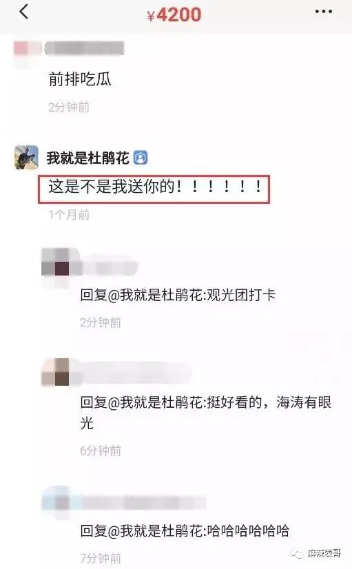 杜海涛跑去问,是不是我送你的。六个感叹号惊人。