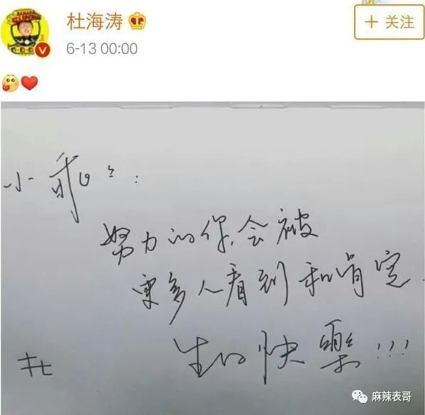 之前,杜海涛手写信,祝沈梦辰生日快乐。