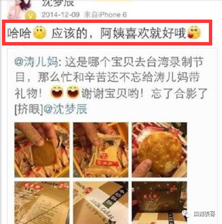 到了2014年12月,沈梦辰去台湾录制节目,还给杜海涛妈妈带礼物。