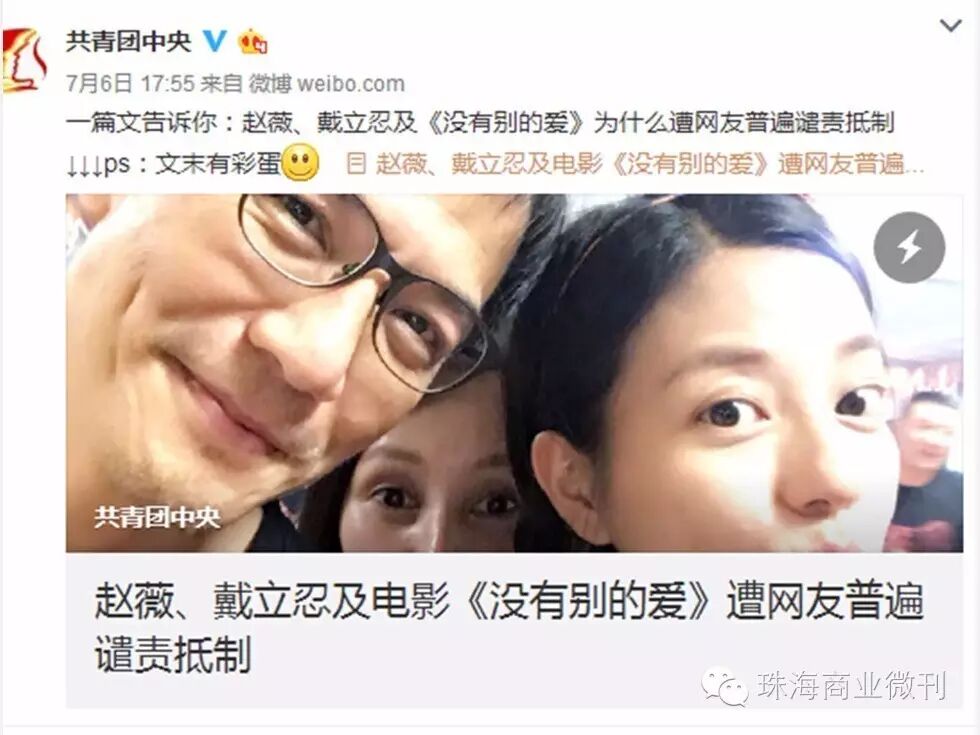 早前,据“共青团中央”官微发布文章,近日,不少网友指责赵薇导演新作《没有别的爱》,主因演员阵容中演员戴立忍被指出曾参与台独相关活动、而另一位主演水原希子曾为辱华照片点赞。在此事引起较大争议后,赵薇于6月29日发文称好讨厌断章取义,而后迅速删除此微博。隔天,片方与主演戴立忍也发表声明表示,“决不接受将根本不存在的台独帽子扣我头上。”并表示将诉诸法律、维权到底。