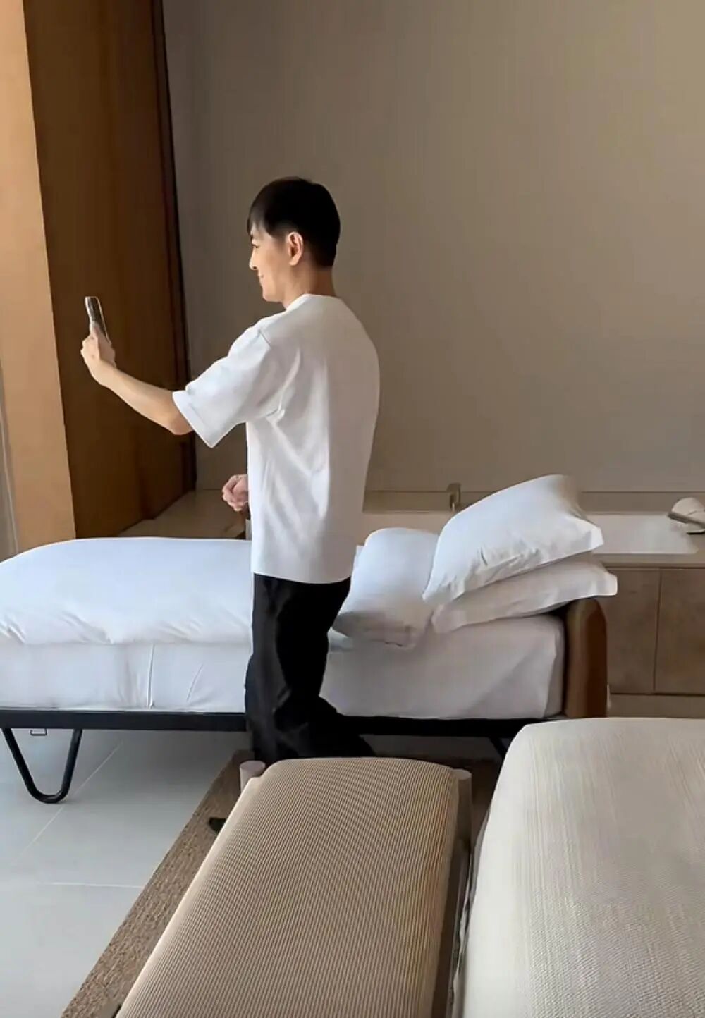 林志颖和陈若仪对这家海景酒店都相当满意。刚进入房间两人就被布置吸引 陈若仪举着手机拍阳台外的海景 林志颖则对着房间里的木质装饰拍个不停。镜头里的林志颖穿白色 T 恤配黑色长裤 身形看起来格外清瘦 笑起来时眼角的纹路浅浅的 完全不像 49 岁的人。网友们都说他不愧是 “冻龄男神” 这状态比真实年龄起码年轻 10 岁。