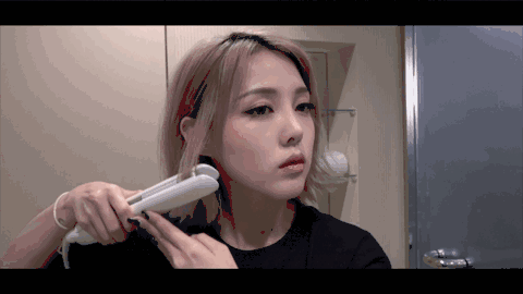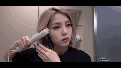 step3:然后再用卷发棒或直发夹先内扣再发尾往外地卷起来,发尾用手指揉搓一下,让其定型。