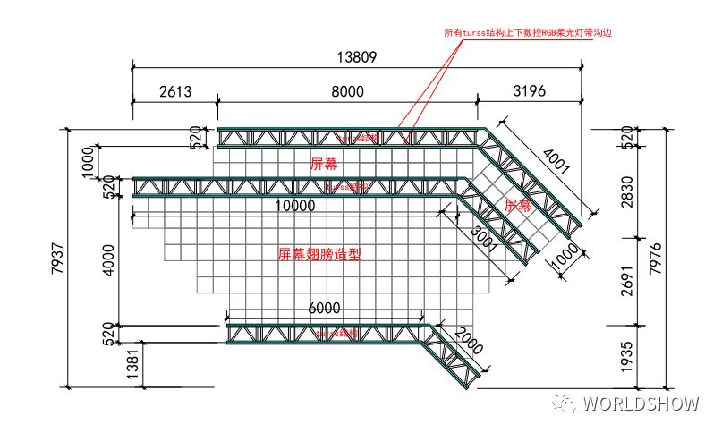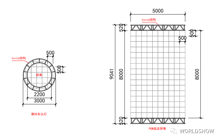 因为整体的⼤的视觉设计体现了摩托⻋的元素,所以在灯位的设计和灯光画⾯的处理上,也要体现这些元素。灯光的画⾯、颜⾊等变化,需要根据⾳乐的节奏和歌曲传达的情绪转变⽽变化。