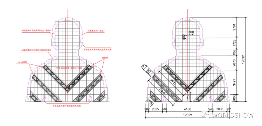 “我们想要给艺人打造⼀个‘⾳乐巨⼈’的形象,所以有了大家看到的“巨人轮廓”这样⼀个舞台,来表达他对音乐的理解的追求。而在细节元素上,我们也融入了车灯、车把等元素,表达杨坤对生活的追求。”