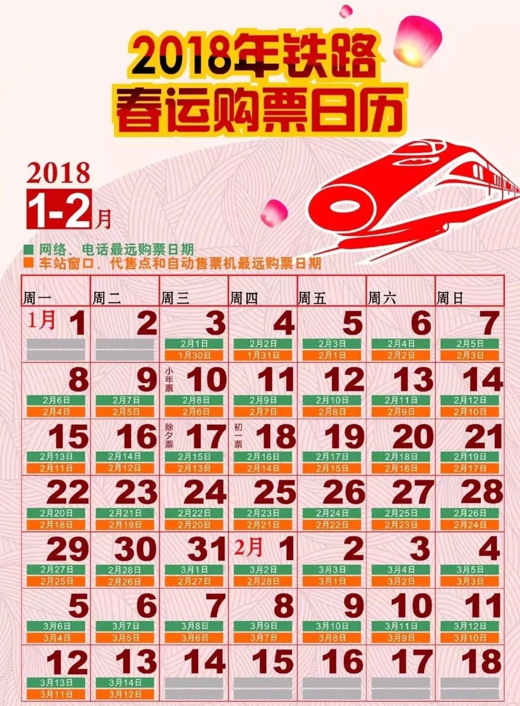 播妞准备了一份春运火车票预售时间表