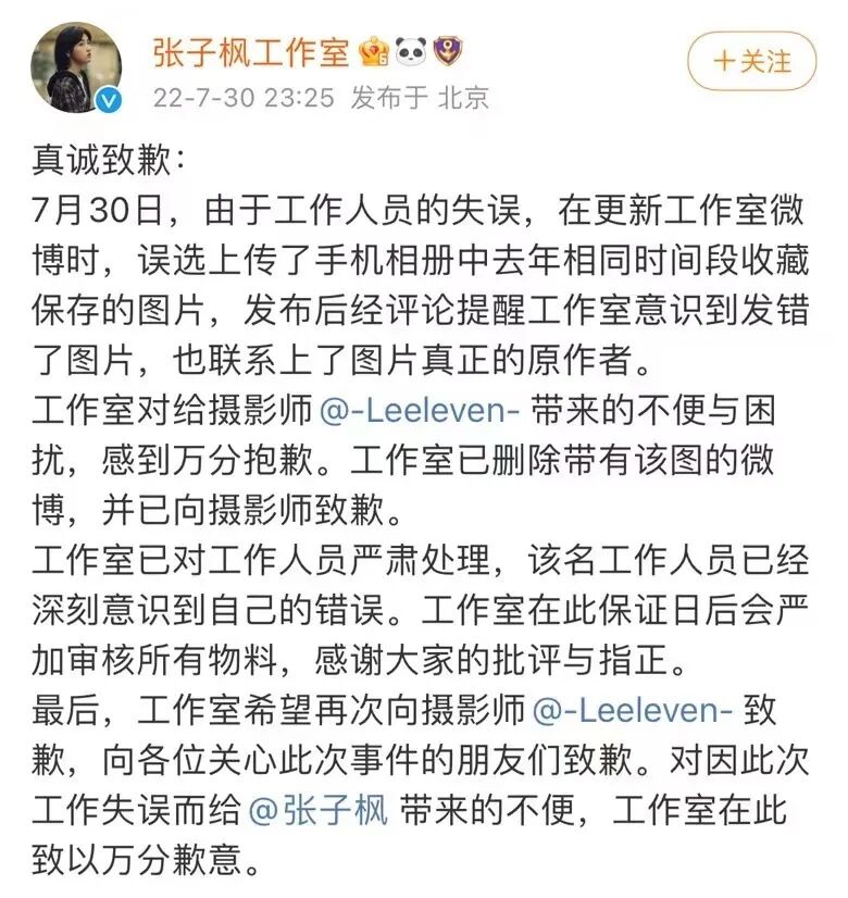 张子枫工作室这边一看事情愈演愈烈马上就发微博澄清,顺便还给原博主进行了一番道歉。