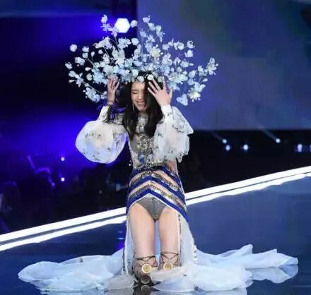 奚梦瑶是维密历史上第一个摔倒的模特。此前,因为失误被维密弃用的模特也有,她就是大KK。