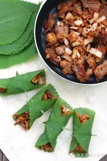 韩国人种出了叶片更大的白苏,拿来包住烤肉,比生菜叶子更加风雅。就算不配肉,像东北人那样炒点大酱,裹住米饭,再来点黄瓜或者青椒,也不错。