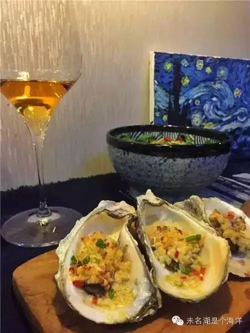 蚝之夭夭:四只生蚝,一只拿来生吃,只需一点点青柠汁就好。其余学街边烧烤档,拿橄榄油拌了蒜蓉和青椒红椒粒,放在蚝肉上入烤箱,也不必管啦。