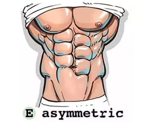 4.右侧腹肌往上偏移,左侧腹肌往下偏移;