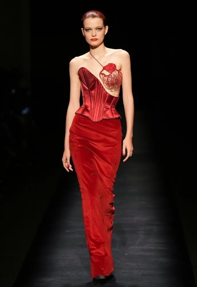 整场大秀的礼服也都非常美,例如除了花朵裙,还有模特穿的“心脏红裙”走进了很多姑娘的心巴里。
