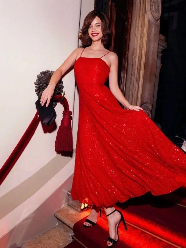 红毯上能与黑色比肩的经典色可能只有红色,Barbara Palvin,亮片红裙配复古卷发,让人感叹,真是好久没看到这么标准的美式甜心造型了。