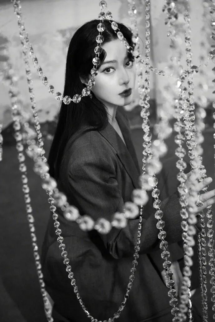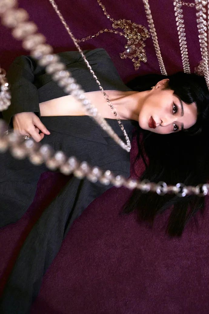 品牌活动,真空西装配合珠链与无辜的眼神,少了以前霸气女王的感觉。