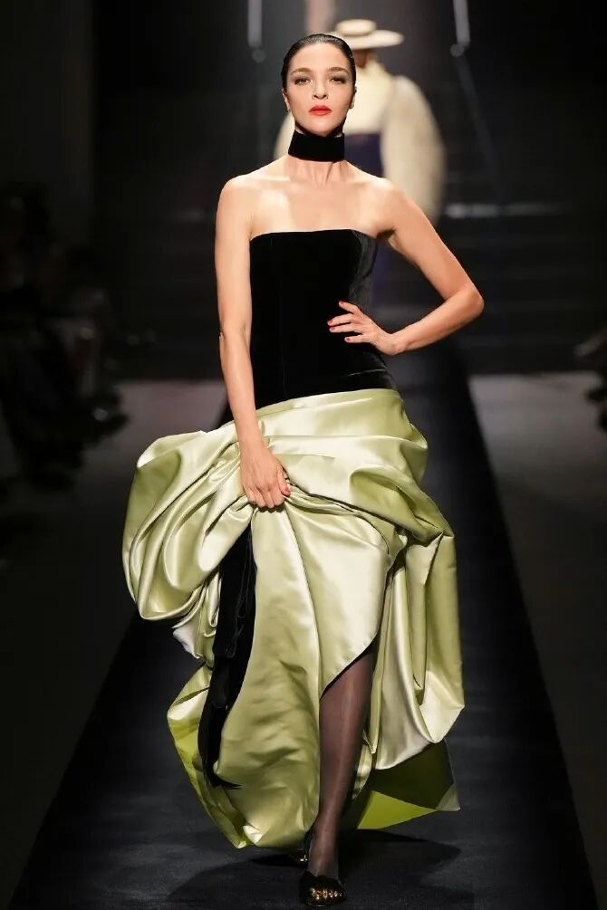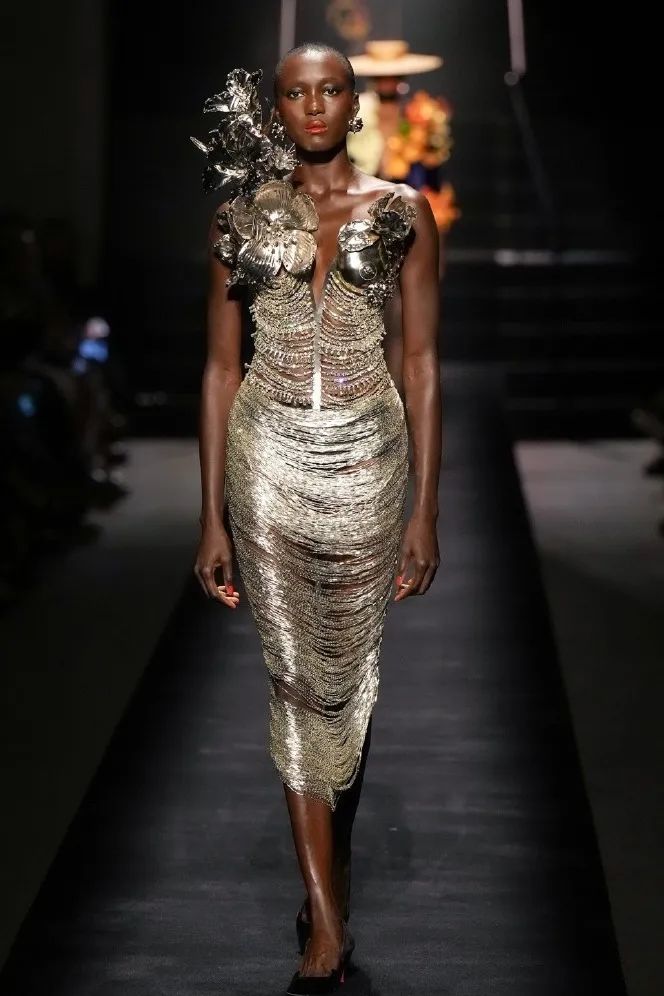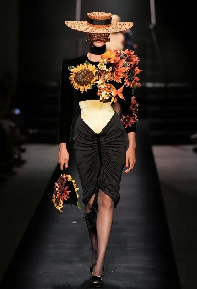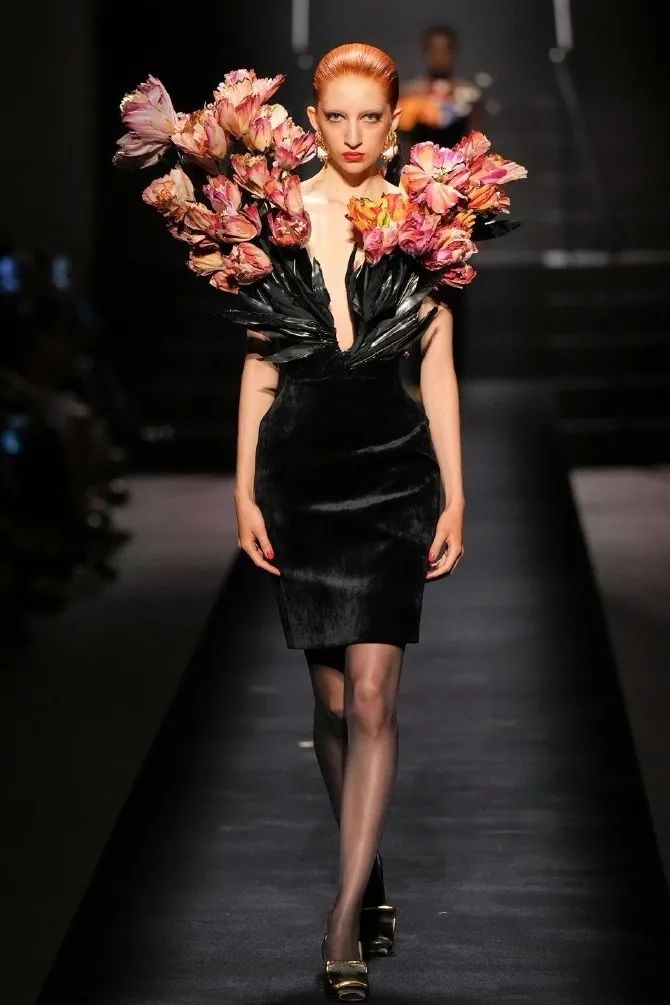 这条布满鲜花的裙子来自Schiaparelli 2022秋冬高定,花朵元素配合简约大气的裁剪,很有特色。