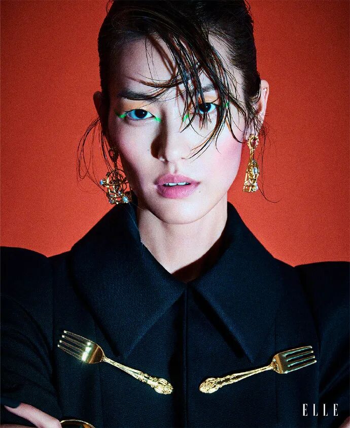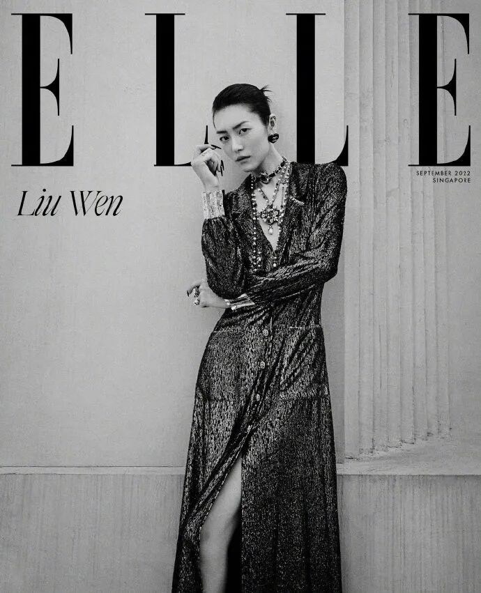 刘雯近期照片不只一张,新加坡版ELLE 九月刊,同样是比较夸张的眼影,就高级又魅惑: