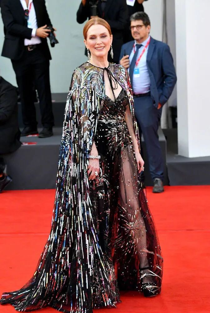 朱利安·摩尔亮片披风,有点儿浮夸得把自己穿成了一朵大烟花。