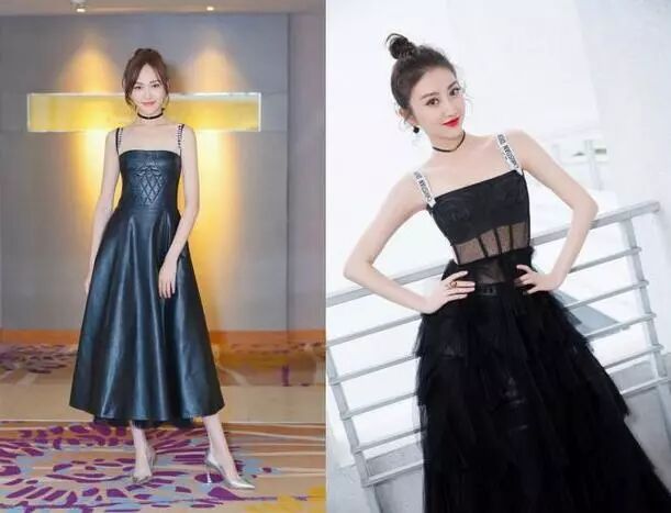 同样是黑色的吊带裙,景甜选择的是腰间镂空的蛋糕裙+黑色的鱼嘴凉鞋,减龄的丸子头,一抹红唇的她性感又不失少女的甜美!