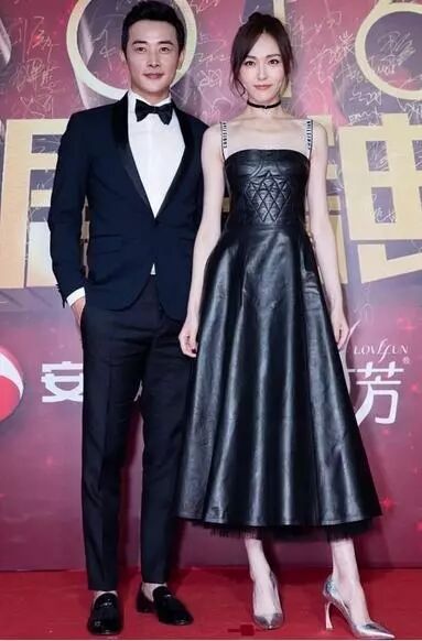 唐嫣罗晋合体现身,唐嫣身穿黑色的吊带皮裙+银色的尖头高跟鞋,露出性感的锁骨,收腰的设计更是给人一种胸部以下全是腿的既视感,时尚的“狗链儿”,减龄的丸子头,时髦优雅!