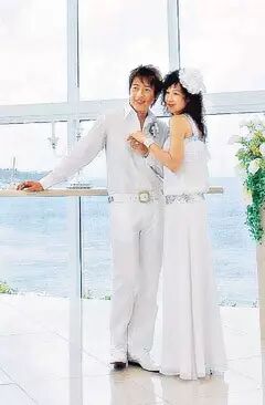 后来一查不是啦,人家2008年结的婚,女方也是个艺人,叫麦景婷。结婚的时候已经相爱14年了,新娘子当年的婚纱照也是美美哒。