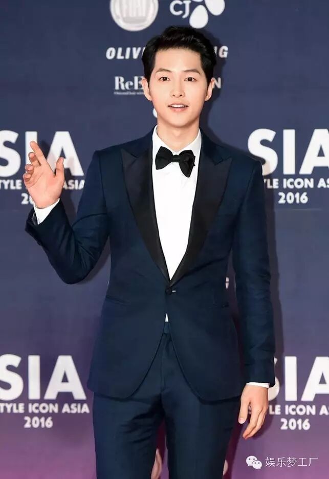 当晚最令粉丝尖叫的,还是因出演热播韩剧《太阳的后裔》人气飙升的“撩妹”男神宋仲基。黑色西装搭配俏皮领结登台的他,让台下粉丝为男神而痴狂。