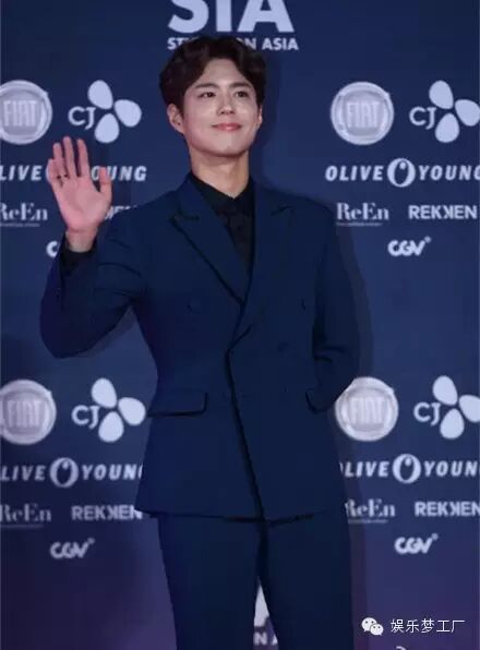 女星美艳醉人,男神们也不甘示弱。从韩剧《请回答1988》里走出来的青涩少年朴宝剑,身着深蓝色西装,帅气逼人。
