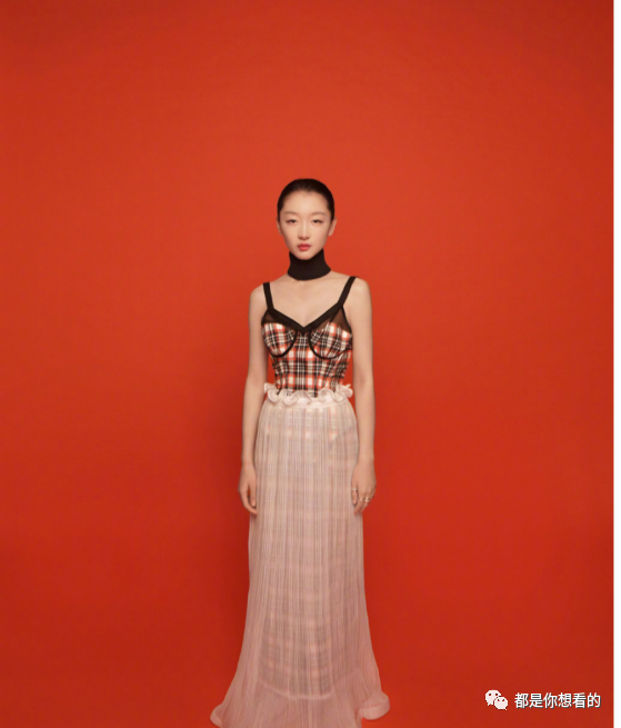 其实这一条裙子是个长款裙子,上半身是吊带的款式,红黑白三个颜色相间的网格,让裙子的色彩非常的融洽,裙子的长度一直到了小腿根部,但是从腰身处,外面则是一层粉色纱网的修身小裙子,看上去非常的可爱。整体的造型给人一种美人鱼的既视感,上面是人身,下半身则是收紧的像一个连体的鱼尾,非常的美。