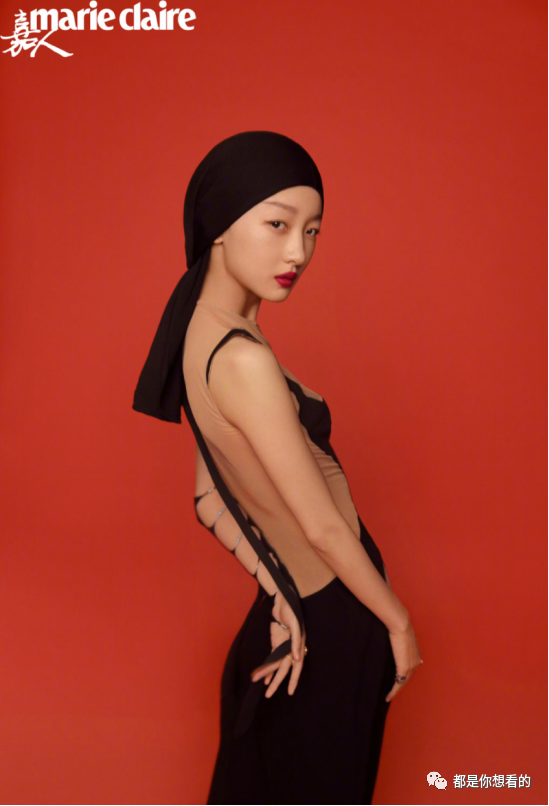 黑色的紧身裙本身就是非常的性感,但是如果是在一个身材比较扁平的人身上,可能就会大打折扣,为了避免这样的尴尬,周冬雨的这条裙子在腰身处则是镂空的样式,而在从腰部往下就是非常大胆的内开叉形式,脚上则是一双非常细头的靴子款式的高跟鞋,头上还带着一条丝巾包裹着头部,整体看上去非常的有气场。虽然是扁平的身材,但还是给人一种非常性感的感觉。