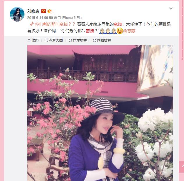 关注刘晓庆的人一定都知道,刘晓庆平时最爱佩戴和收藏的,当属蜜蜡了。而刘晓庆在网络上也非常活跃,经常分享生活的同时,也多次表示自己对蜜蜡前景的看好。