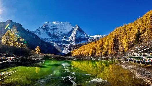 稻城亚丁自然保护区位于甘孜州南部稻城县日瓦乡境内,景区海拔2900米(贡嘎河口)至6032米(仙乃日峰),面积5.6万公顷。景区以仙乃日、降边央、夏纳多吉三座雪峰为核心区,北南向分布。由于特殊的地理环境和自然气候,形成了独特的地貌和自然景观,是我国保存最完整的一处自然生态系统。 被国际友人誉为“水蓝色的星球上的最后一片净土”。