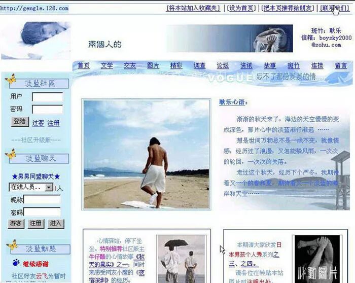 起初他一个人维护名叫“淡蓝色的回忆”的网站。而他也有本职工作——秦皇岛市公安局负责内勤工作的一名警察,2006年他在公安局升任副处长,工作变忙以后的耿乐选了几位聊得来的同志网站站长一起来运营这个网站,同时更名为“淡蓝网”。
