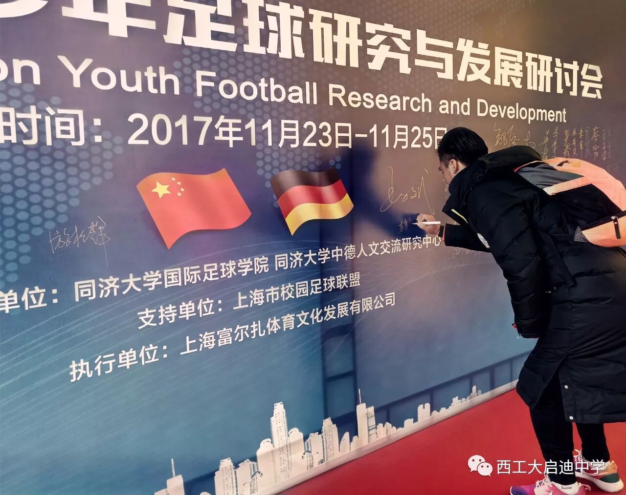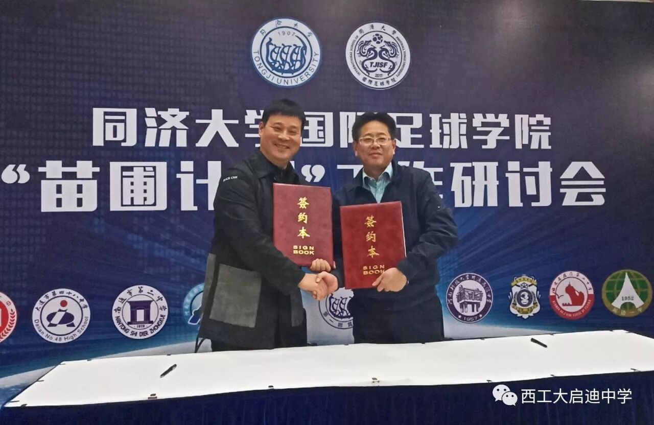 2017年11月23日,同济大学国际足球学院“苗圃计划”工作研讨会在上海同济大学举行。西工大启迪中学作为陕西唯一一所与会学校,与全国另外十一所重点中学一起和同济大学国际足球学院签约,正式成为同济大学“苗圃计划”基地学校。