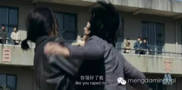 最后一场戏,四宝在学校里众目睽睽之下“收拾”王彩玲,觉得王彩玲趁他喝多了和他发生关系,是把他玷污了: