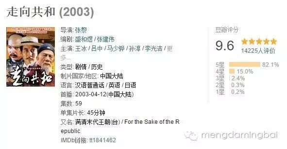歪楼推荐一下,《走向共和》是一代神剧,豆瓣将近一万五千人评价,9.6分,目前还没有国产剧能超越。这部戏足足准备了三年半,拍了九个月,一共出现140个人物,人人都有完整的小传,生平、性格、主张无不详尽,这样下功夫的剧组之后几乎是再也没见过了。