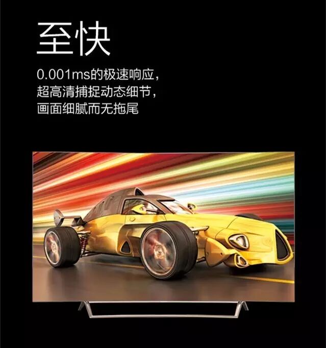 响应速度达0.001ms,是普通液晶电视的400倍,实现运动画面0拖尾;